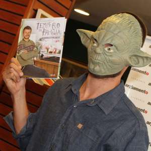 AgNews Foi explicado o motivo de Rodrigo Hilbert ter aparecido no lançamento de seu livro como você confere acima: usando uma máscara do Yoda, personagem de Stars Wars. Acontece que o ator foi alvo de uma brincadeira do CQC, que lançou a campanha Todos Contra Rodrigo Hilbert, brincando com a suposta perfeição do marido de Fernanda Lima.