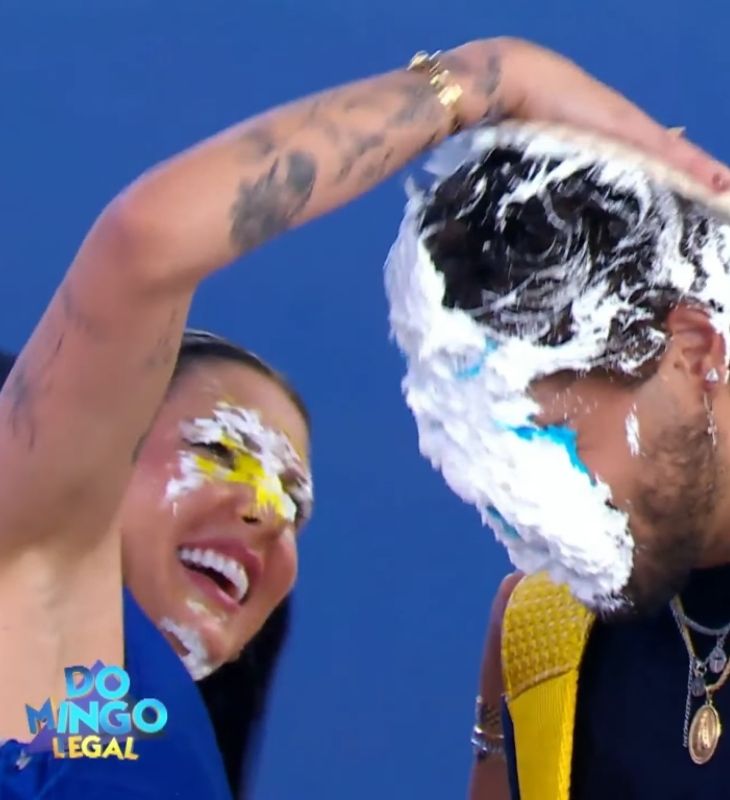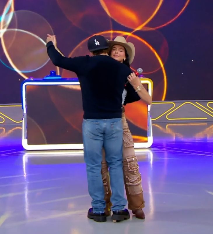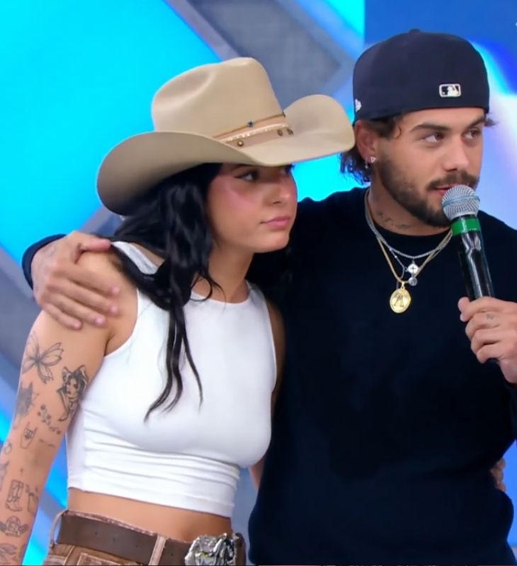 Zé Felipe e Ana Castela dão primeiro beijo público durante Domingo Legal; veja as fotos