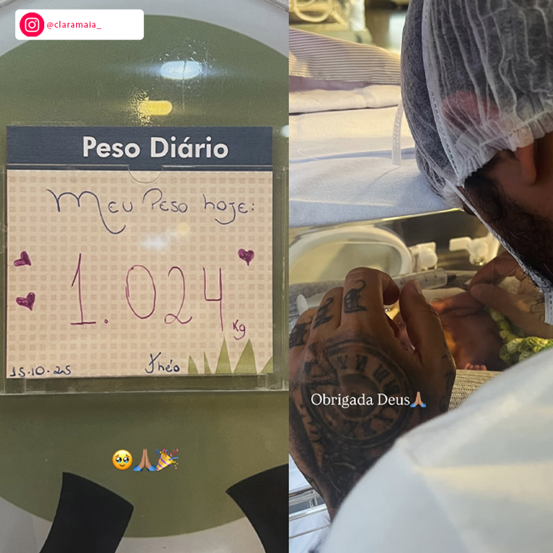 No dia 1º de setembro, Isabella Maia, irmã de Clara compartilhou uma foto de uma plaquinha que mostra o peso de Theo. E não é que esse guerreirinho já está com quase seu primeiro quilo? Segundo a imagem, o bebê já pesa 822 gramas.