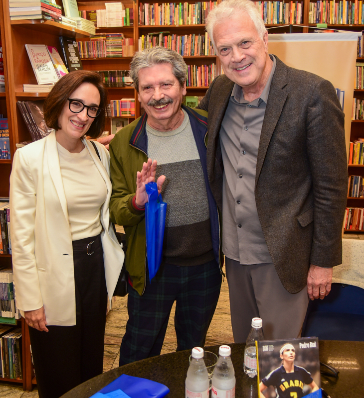 Carinho entre Pedro Bial e a filha rouba a cena em lançamento de novo livro do jornalista; veja fotos