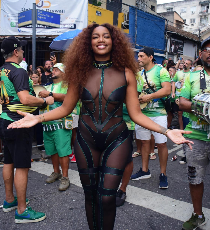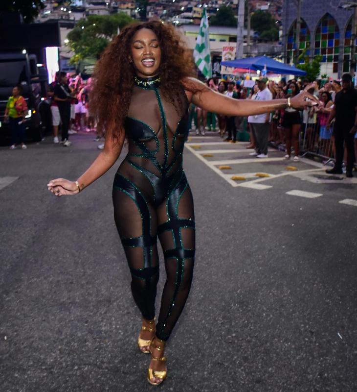 IZA aposta em look com transparência e mostra samba no pé em ensaio da Imperatriz Leopoldinense