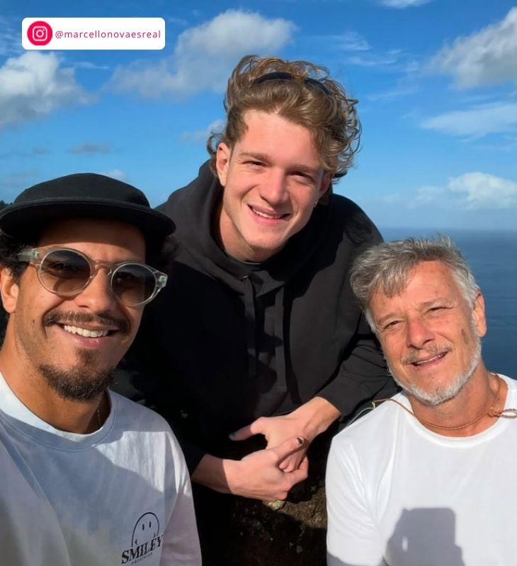 Já diziam por ai que filho de peixe, peixinho é!? Não dá para negar que muitos filhos de celebridades são idênticos aos seus papais. Pedro Novaes, por exemplo, impressiona ao ser a cópia de Marcello Novaes. Ele nasceu do antigo casamento do galã da TV Globo com Letícia Spiller e seguiu os passos do pai, se tornando ator. Na foto acima, é possível ver os dois artistas ao lado de Diogo Novaes, que é irmão de Pedro e fruto do antigo relacionamento de Marcello com Sheyla Beta. A seguir, veja outros filhos de famosos que são a cara de seus pais.