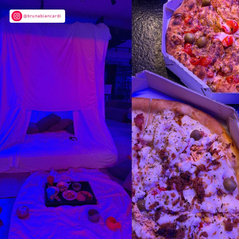 As pequenas tiveram direito a cabaninha, pizza e filminho com os papais