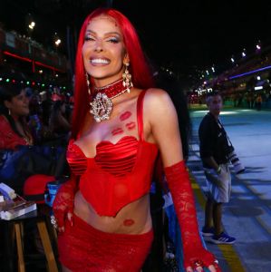 Com peruca vermelha e marquinhas de beijo pelo corpo, Jaquelline Grohalski brilha em Carnaval do Rio de Janeiro