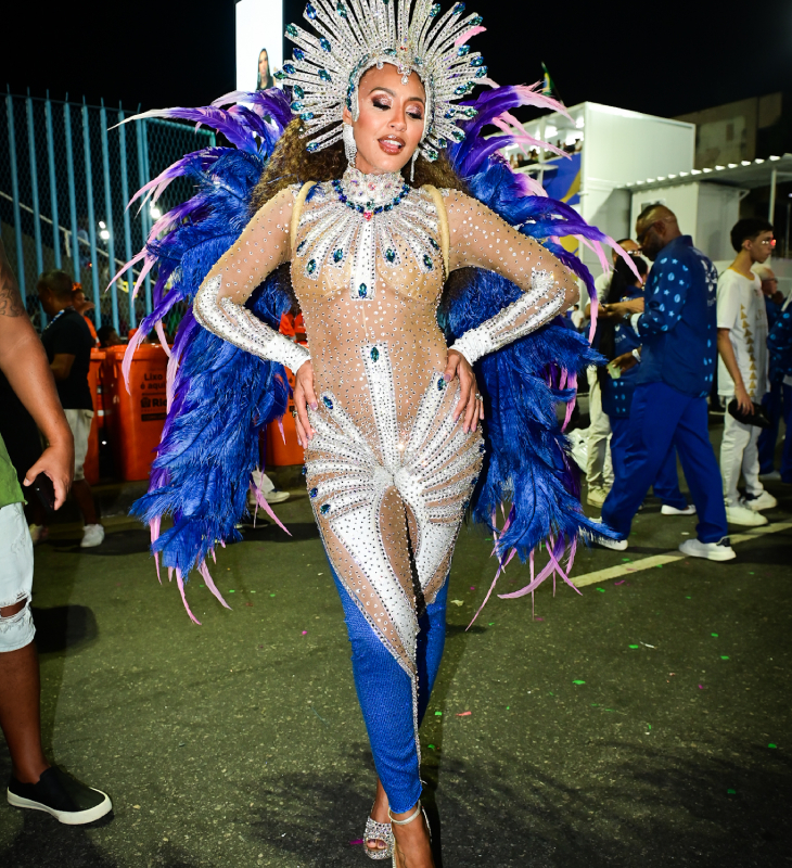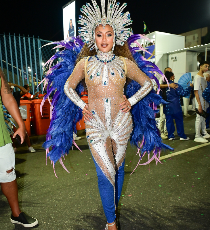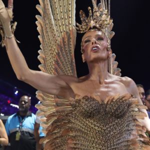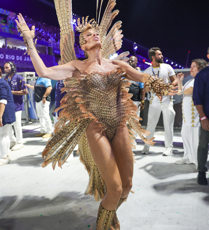 Adriane Galisteu usa fantasia de falcão-lanário como destaque da Portela