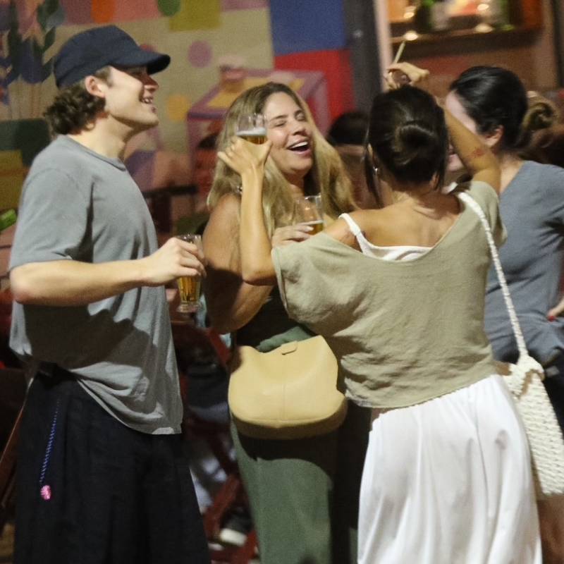 Lucas Pinheiro Braathen se arrisca na dancinha ao lado de familiares em restaurante no Rio de Janeiro