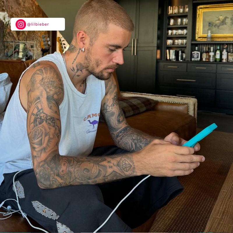 Todo desenhado! Confira as diversas tatuagens que Justin Bieber tem pelo corpo