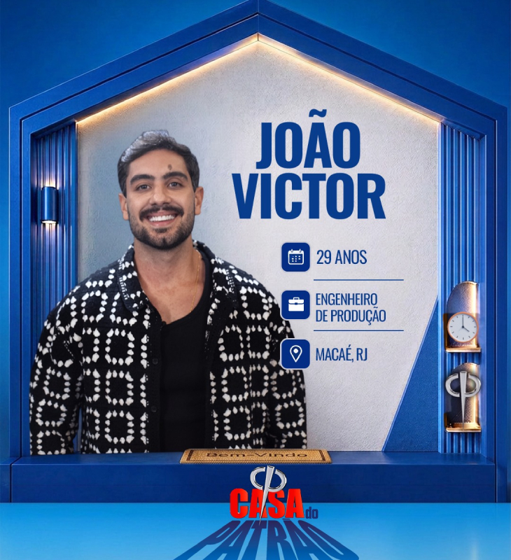 Divulgação-TV Record João Victor tem 29 anos de idade e é Engenheiro de Produção em Macaé - RJ. Começou a trabalhar aos 16 anos e, no momento, está desempregado. Deu aulas de inglês, foi vendedor e trabalhou em pet shops - bico que voltou a fazer atualmente, assim como lives no Tik Tok. Formado em Engenharia de Produção, se orgulha de ter sido gerente comercial de uma grande empresa na qual começou como estagiário.