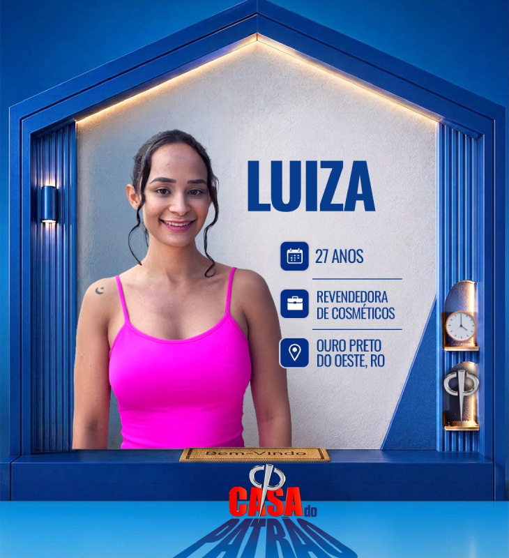 Divulgação-TV Record Luiza tem 27 anos de idade e é revendedora de cosméticos em Ouro Preto do Oeste - Rondônia. Do Espírito Santo, mudou com a família para lá aos três anos de idade, é a filha caçula de quatro irmãos. O grande sonho era ter condições de celebrar seus 15 anos, mas como não foi possível, começou a vender trufas na escola aos 16 anos para pagar a festa de 18 anos. Atualmente, revende cosméticos de catálogos e bijuterias. Também faz bicos como secretária e vendedora de loja.