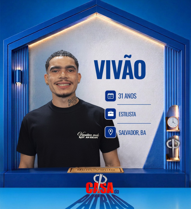 Divulgação-TV Record Vivão é estilista e tem 31 anos de idade. Iniciou sua trajetória artística nas ruas de Salvador usando o nome Vivão. Mais tarde, mudou-se para São Paulo com o objetivo de desenvolver seu trabalho na moda e algumas celebridades admiram e vestem suas peças.