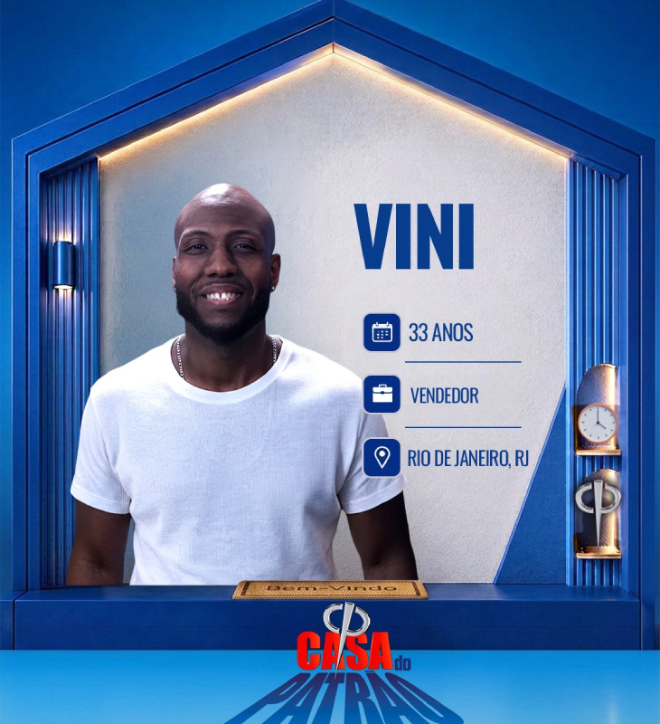 Divulgação-TV Record Vini é vendedor e tem 33 anos de idade. Criado no subúrbio do Rio de Janeiro, há 12 anos fez parte do grupo Os Delícias, no qual era dançarino de funk. Atualmente, se dedica ao Muay Thai e já foi vice-campeão brasileiro. Nas festas, diz que é o cara que vai sempre causar.
