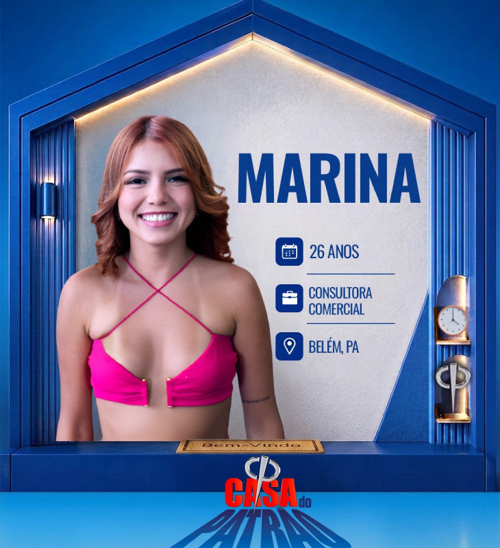 Divulgação-TV Record Marina é consultora comercial e tem 26 anos de idade. De Belém - PA - sua trajetória é marcada por mudanças, tendo morado com diferentes familiares ao longo da infância. Morou um período em Portugal e há poucos meses está em Florianópolis, onde atua na área comercial de um concierge cirúrgico. Ajuda financeiramente a mãe, que vive em Belém, sua cidade natal.