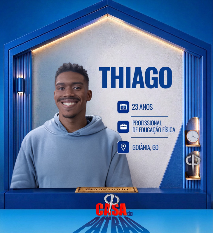 Divulgação-TV Record Thiago é profissional de Educação Física e tem 23 anos de idade. Nascido e criado na zona rural de Goiás, em Formosa, hoje mora em Goiânia. Descobriu o atletismo na escola onde estudava e chegou a ser campeão estadual, viajando por diferentes estados. Seu bom desempenho como atleta garantiu uma bolsa para morar e treinar em Barra do Garças (MT), onde se formou em Educação Física. Além de personal trainer, também faz um extra como árbitro de atletismo.