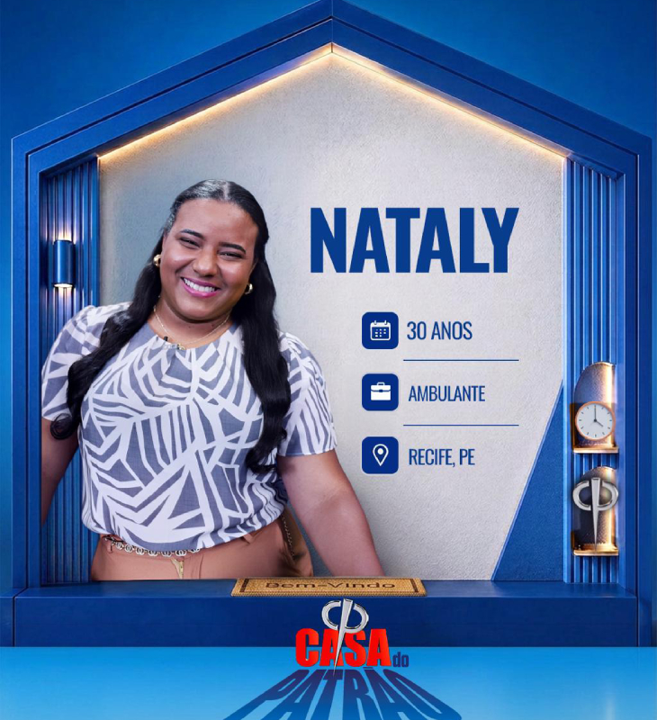 Divulgação-TV Record Nataly tem 30 anos de idade e é ambulante de Recife - PE. Criada pela avó e pelas tias, saiu de casa aos 17 anos para trabalhar e conquistar sua independência. Tem uma filha adotiva de 5 anos. Sua renda atual vem do trabalho como ambulante. Nataly percorre bares e quiosques nas regiões mais badaladas do Recife vendendo balas, chicletes, chocolates. Ela diz que, por conta de seu carisma e simpatia, sempre volta pra casa com a meta cumprida.