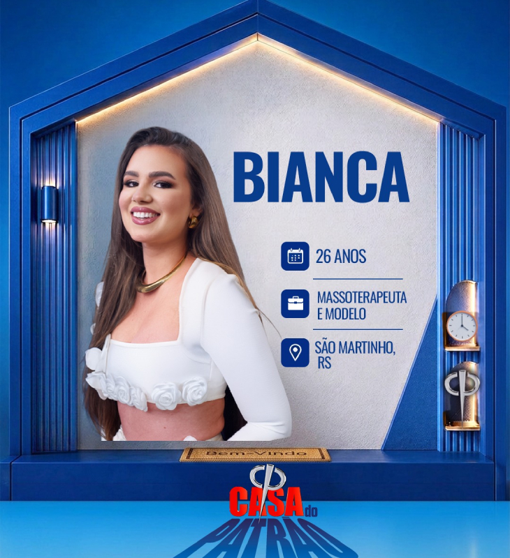 Divulgação-TV Record Bianca tem 26 anos de idade e é uma massoterapeuta e modelo de São Martinho - RS. Filha única, mora com a mãe e as duas são muito próximas. A principal fonte de renda delas é o trabalho que fazem de massoterapeutas. Elas atendem em São Martinho e toda região. Participa de concursos de beleza desde a infância e é a atual Miss Grand Rio Grande do Sul.