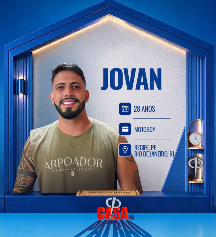 Divulgação-TV Record Jovan tem 28 anos de idade e é motoboy. Tem um filho de 6 anos, é do Recife/PE. Aos 18 anos, se mudou para o Rio de Janeiro com o objetivo de servir na brigada paraquedista. Atua como motoboy há quase 10 anos. Também é instrutor de capoeira e graduado na faixa branca e vermelha no Muay Thai.
