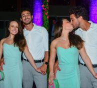Recém-casados, Larissa Manoela e André Luiz Frambach trocam beijos em festa de casamento de Rodrigo Fagundes e Wendell Bendelack