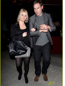 Jessica Simpson aproveitou a noite de sexta-feira, dia 3, para jantar ao lado do noivo, Eric Johnson.