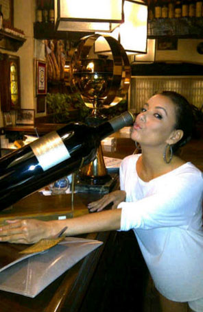 Eva Longoria brinca de beber vinho