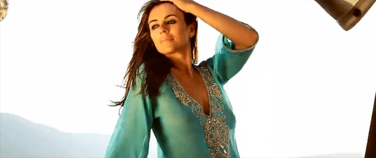 Elizabeth Hurley posou sem sutiã para a nova campanha da sua marca de swimwear. Em imagens de um vídeo liberado pelo tabloide The Sun, a atriz aparece com os seis à mostra em alguns momentos.