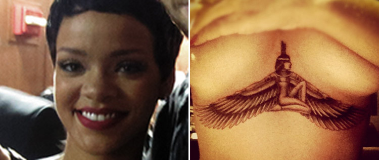 Depois de mudar o visual das madeixas, Rihanna também mudou o visual de seu corpo. A cantora de Barbados fez uma nova tatuagem, feita próxima aos seios, e se inspirou numa divindidade egípcia: a deusa Ísis. A artista divulgou o resultado da tattoo em sua conta oficial no Twitter, no domingo, dia 9. Ela ainda escreveu: