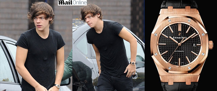 Harry Styles, um dos vocalistas do grupo teen One Direction, é um jovem de gostos refinados. Tanto que o cantor foi flagrado pelo Daily Mail com um relógio no valor de 23 mil e 250 libras, isto é, 75 mil e 831 reais, aproximadamente.