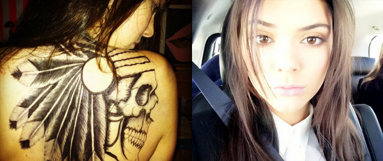 Kendall Jenner assustou os seus seguidores no Twitter quando postou a foto que você confere na imagem acima, de suas costas com um grande desenho de uma caveira com traços indígenas.