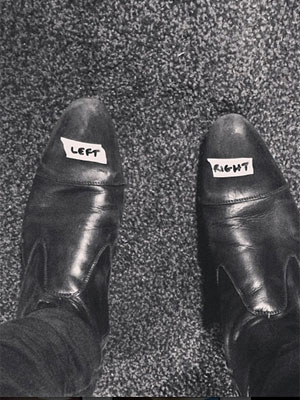 Na última quinta-feira, dia 17, ele publicou uma foto em seu Instagram de seus sapatos, que continham lembretes de quais eram os lados esquerdo e direito.