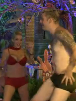 Sem hesitar, a sister saiu da piscina e, ao lado do amigo, fez um show para a casa dançando. Momentos depois, o jovem publicitário tirou a sunga e pulou na piscina.