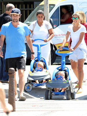 Marcelo Serrado passeia com a família