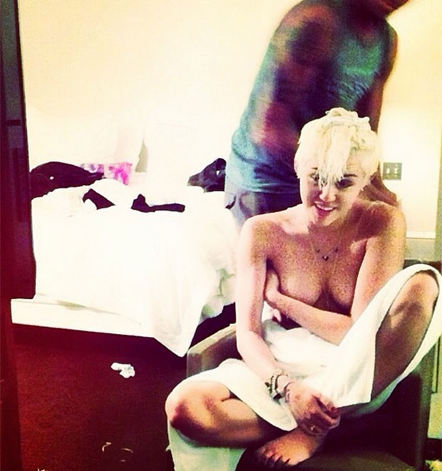 Miley Cyrus publicou uma imagem para lá de ousada em sua página oficial no Instagram. Na madrugada desta sexta-feira, dia 11, a cantora postou um clique em que aparece topless, apenas com parte do corpo coberto por uma toalha.