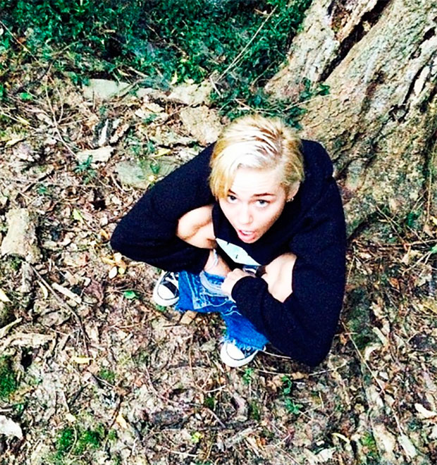 Miley Cyrus divulga imagem em que aparece fazendo necessidades em uma árvore