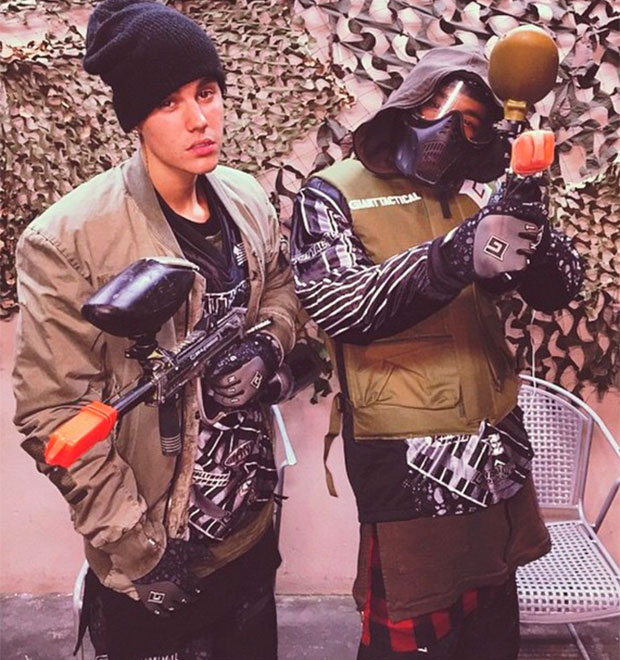 Justin ainda registrou o momento da diversão e publicou uma foto no Instagram em que aparece com uma arma de brinquedo ao lado do rapper Lil Twist.