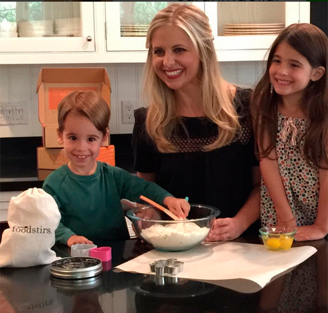 Sarah Michelle Gellar compartilhou nas redes sociais uma foto ao lado dos filhos, na cozinha