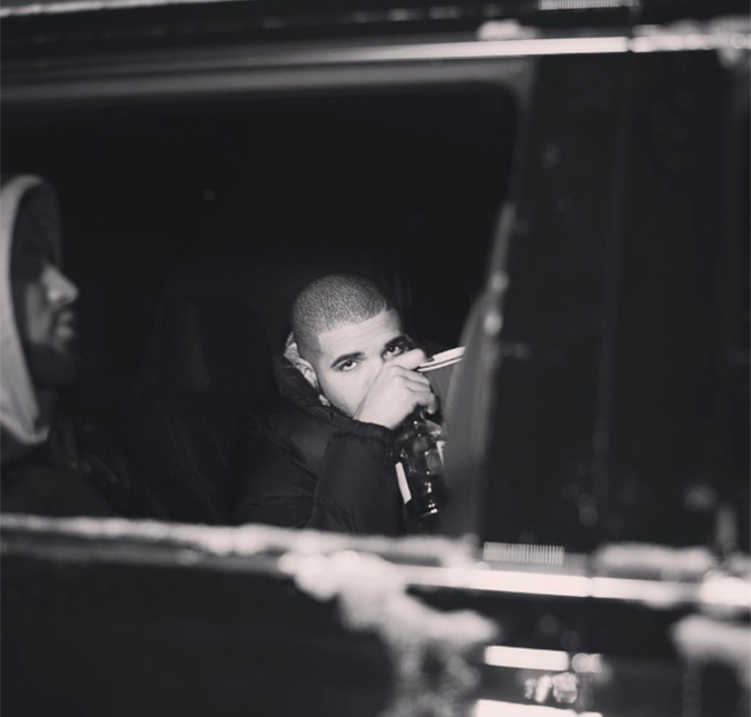 Como em uma das últimas, na imagem o astro aparece em preto e branco, com uma feição bem sombria olhando para a câmera com uma garrafa de bebida nas mãos e escreveu na legenda: