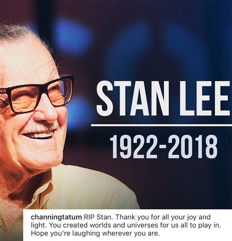 O criador de heróis como Homem-Aranha e Hulk faleceu no dia 12 de novembro de 2018, aos 95 anos de idade. Confira, a seguir, os famosos que prestaram suas condolências à Stan Lee.
