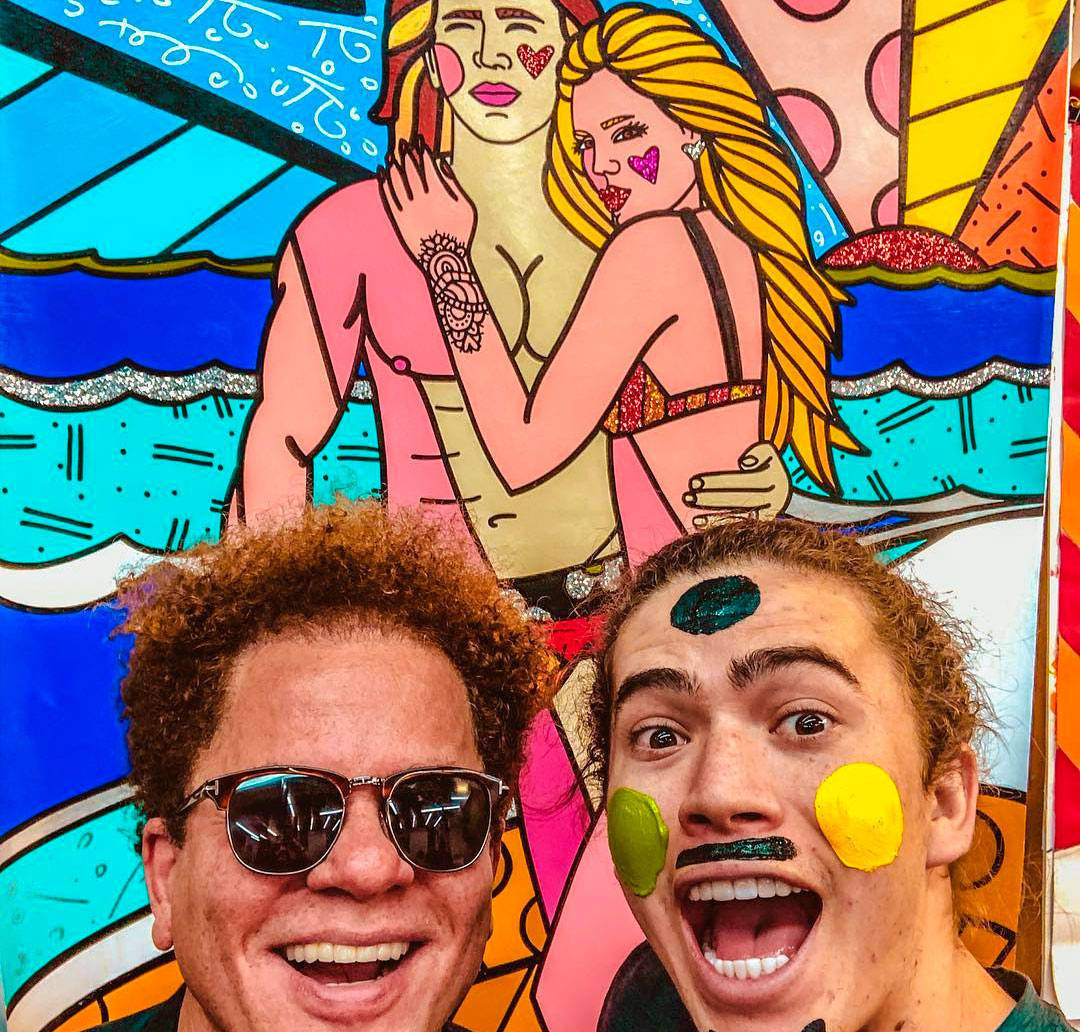 - Eu pintado pelo Romero Britto do lado do Romero Britto em frente a um quadro do Romero Britto!
