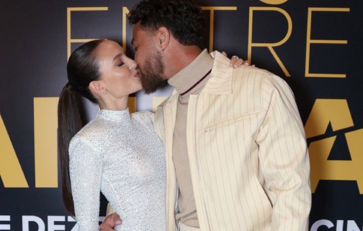 Larissa Manoela troca beijos com o marido, André Luiz Frambach, em pré-estreia de filme