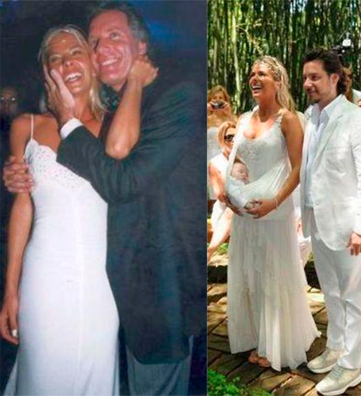 A seguir, compare os vestidos de noiva das famosas no primeiro e no segundo casamento: