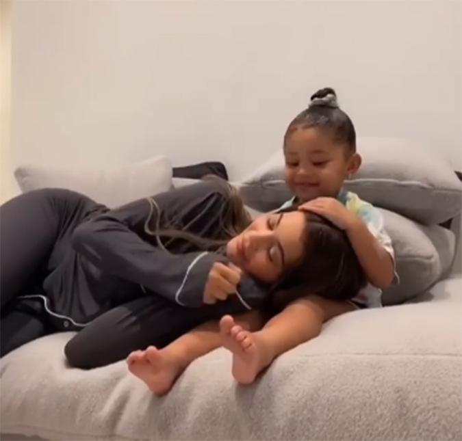 Stormi Webster é uma fofura e Kylie Jenner provou isso! Na última quinta-feira, dia 1º, a socialite compartilhou o vídeo abaixo, em que exibe a reação da filha ao deitar no colo dela.