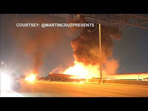 De acordo com a CBS Miami, o motorista do caminhão-tanque acabou perdendo o controle do veículo após o choque, acertou um muro na rodovia e explodiu.