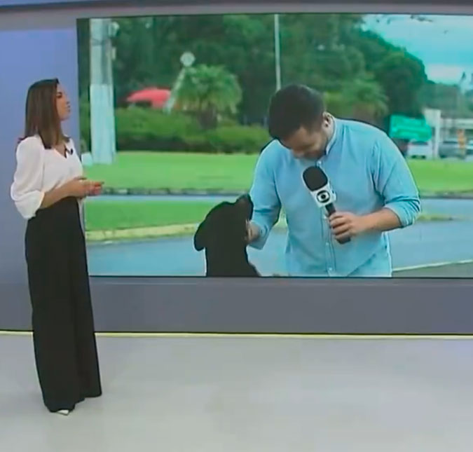 Repórter da Rede Globo passa por imprevisto após cachorro invadir entrada ao vivo: - Quer me dar um abraço