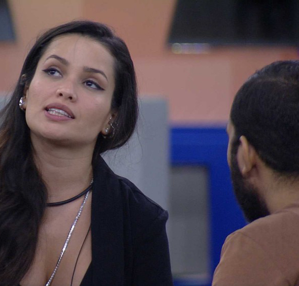 - Eu tenho medo de me autossabotar. Mas eu quero te falar, do fundo do coração, que nós duas voltemos. E quando a gente voltar, aí eu quero conversar com você. Agora não porque eu tenho medo de eu falar alguma coisa, você falar alguma coisa. Porque a gente está as duas no Paredão. Eu espero que a gente volte, as duas. Eu estou falando do fundo do coração.